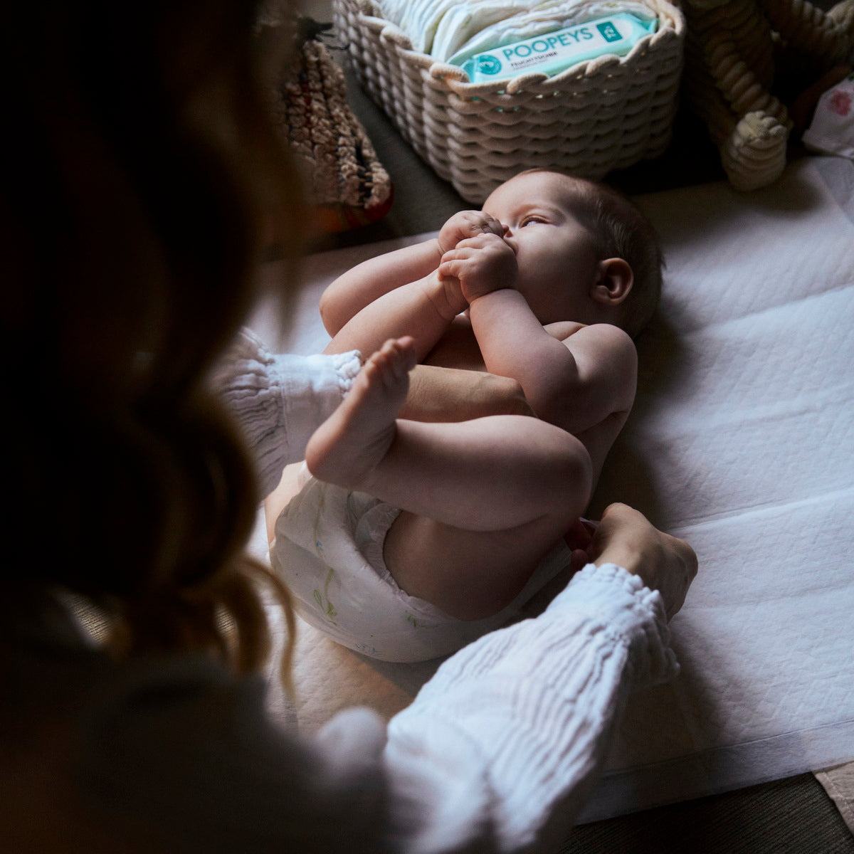 2. Arbeitsbereich vorbereiten: Wählen Sie eine flache und sichere Oberfläche zum Windelwechseln aus. Dies kann ein Wickeltisch, eine Wickelunterlage oder saubere Handtücher auf einer flachen Oberfläche sein.