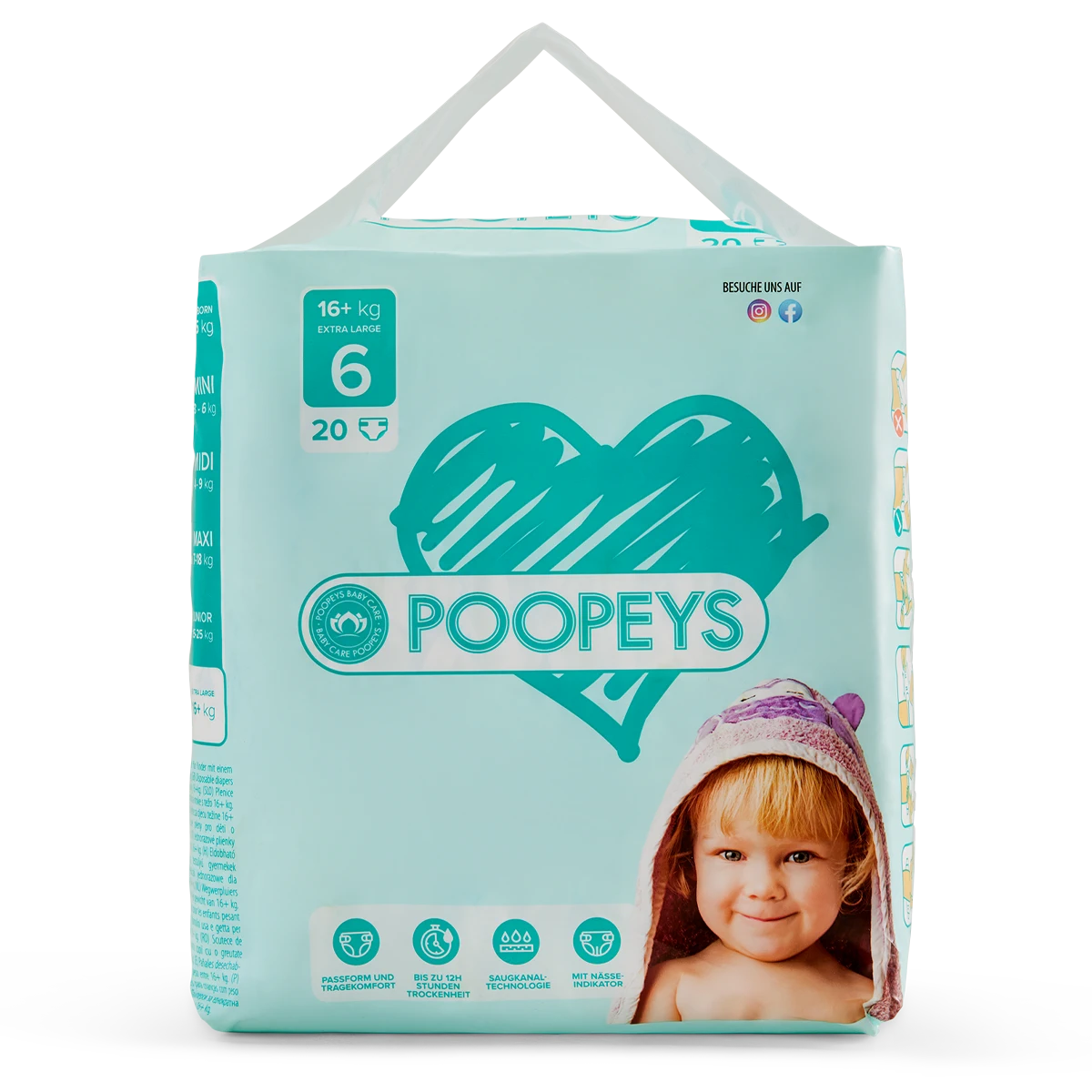 POOPEYS Windeln gibt es in sechs Größen: